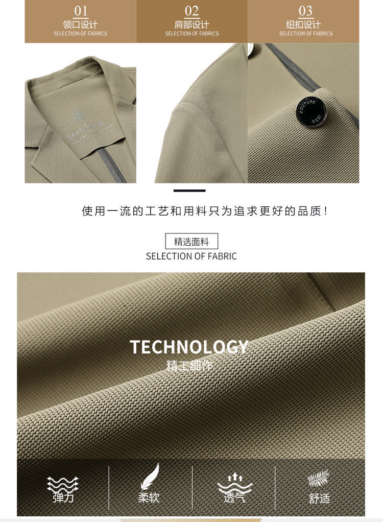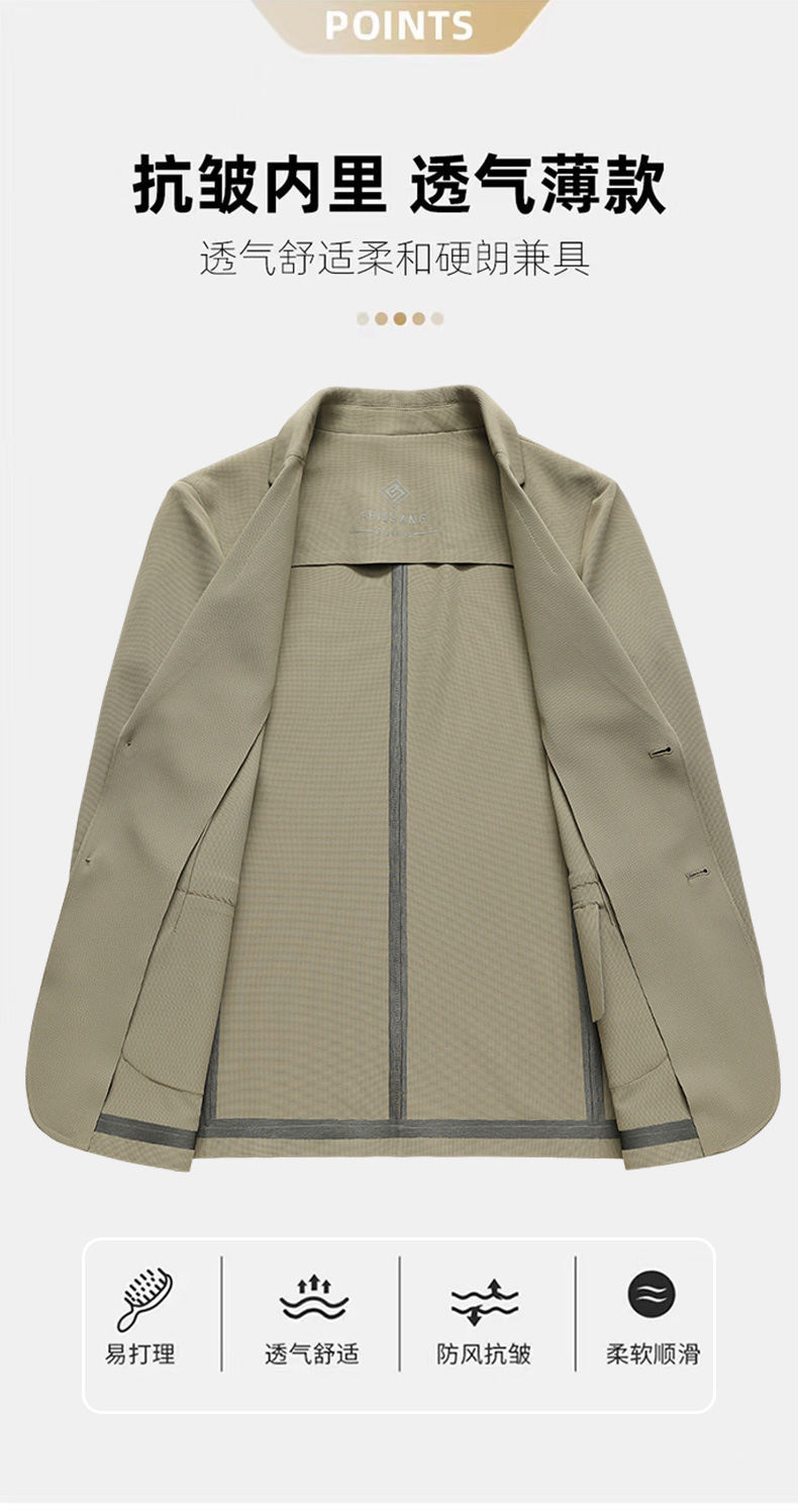 Ice Silk Seamless Suit Men's 2024 Summer New Business Casual Single Western Thin Anti-Wrinkle Quick-drying Sunscreen Suit