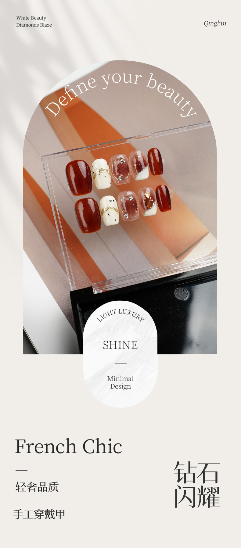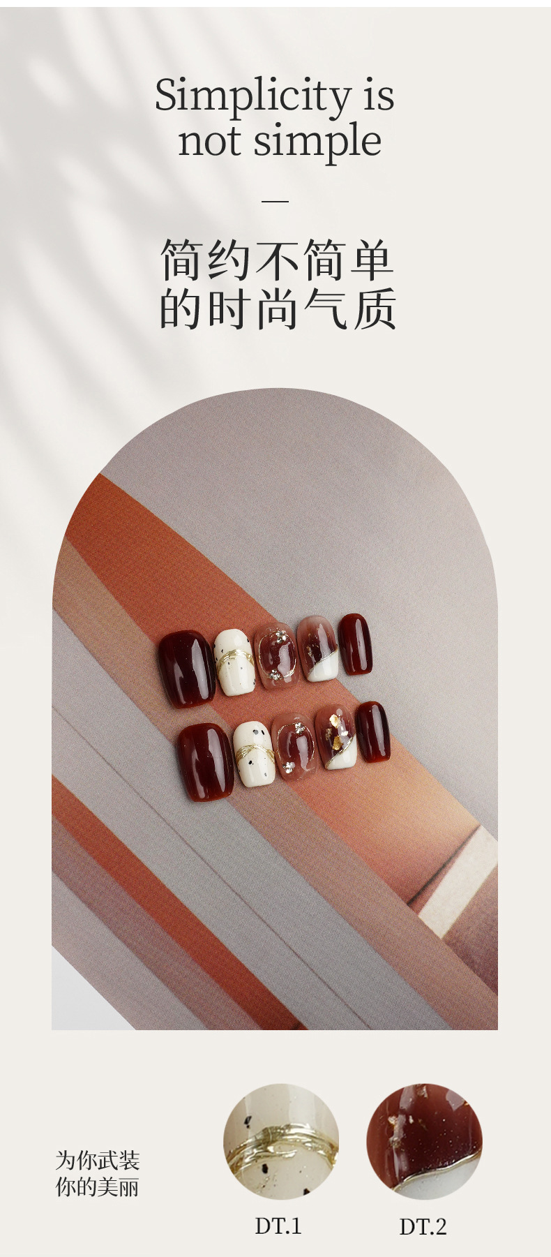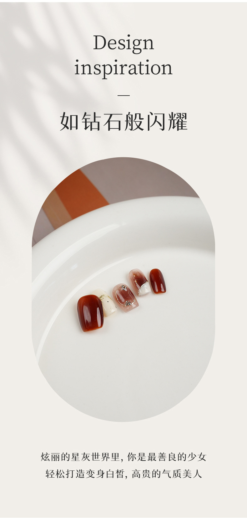 Hand-Wearing Armor wine red Hand-painted Halo-dyed Broken Diamond Gentle Advanced Wearable Manicure Finished Nail Stickers Short